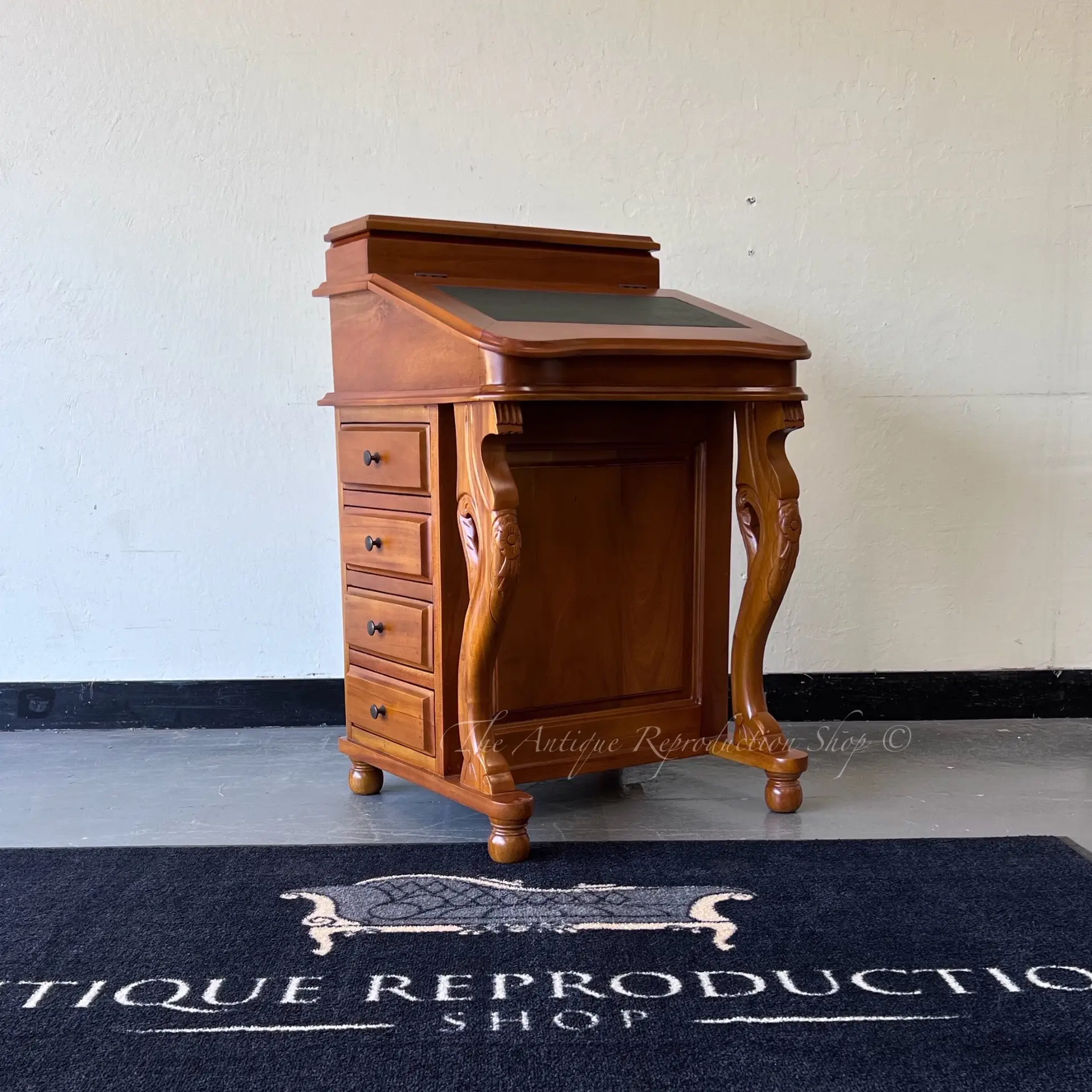 Part of our wonderful range of antique furniture is this lovely reproduction davenport children's writing desk. This beautiful writing desk works perfectly to create that old world charm. Featuring beautifully carved detailing, bun feet, Tilt top opening compartment, pencil box at the top compartment and a solid mahogany construction.