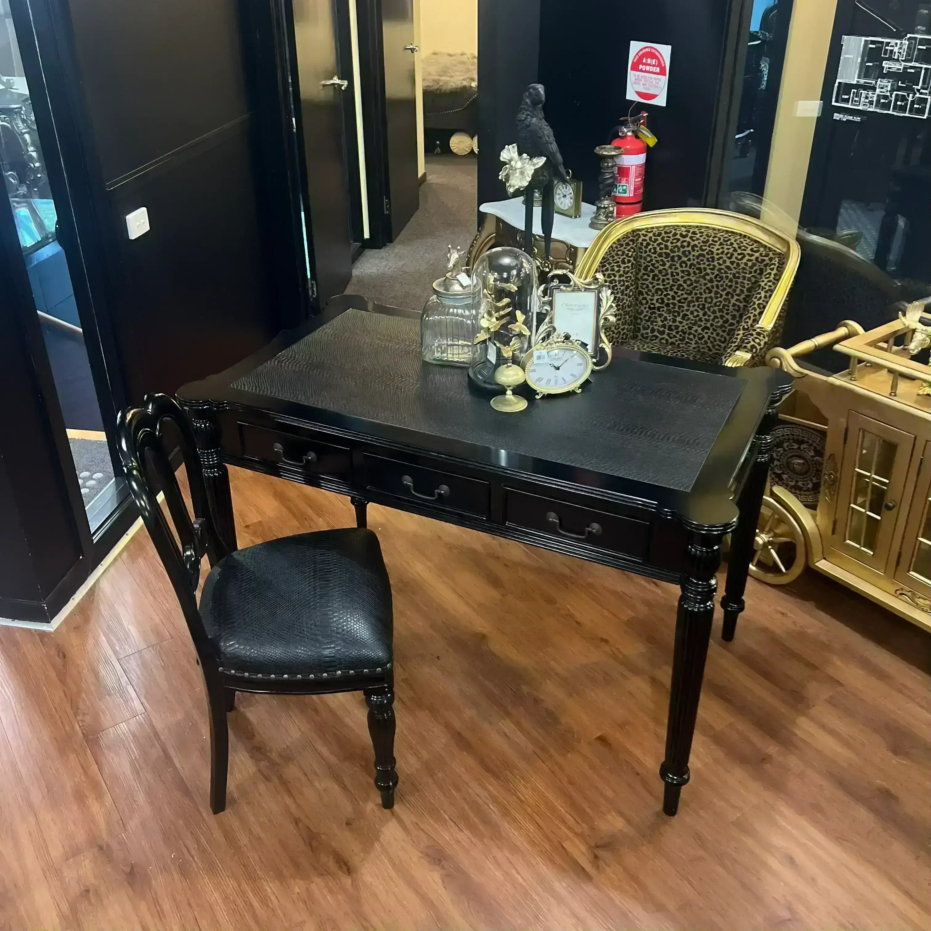 Empire Style 3 Drawer Writing Desk And Chair Black Alligator Lux