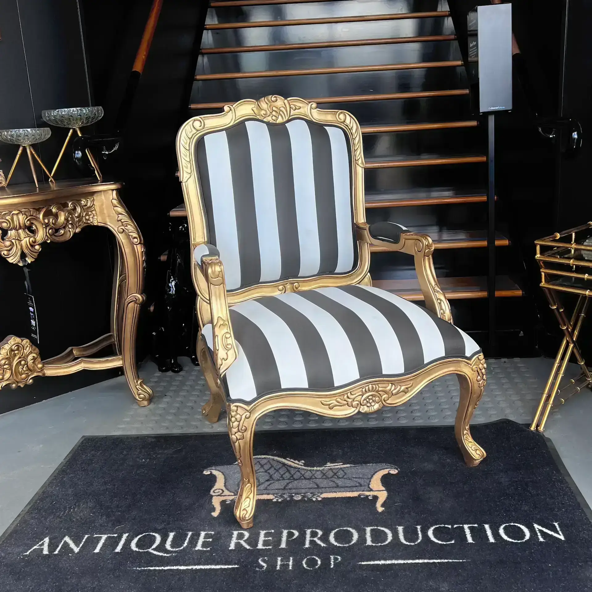 Part of our French provincial range, these beautiful Louis style french sitting arm chair works perfect to create that characteristic french feel that we all want. Featuring beautiful hand carved detailing and solid mahogany construction. The perfect addition you your very own french collection.