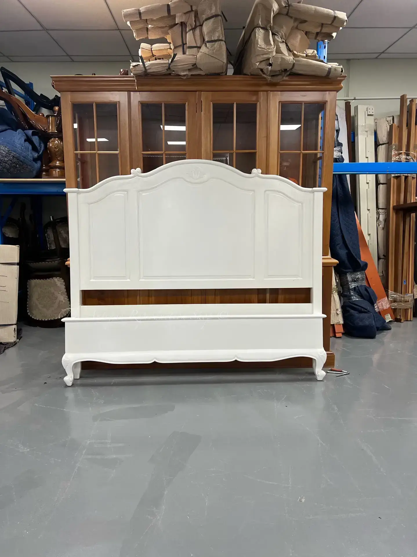 A gorgeous solid mahogany French Country queen ensemble. This bed is hand crafted, beautiful quality and is the perfect addition to any room!