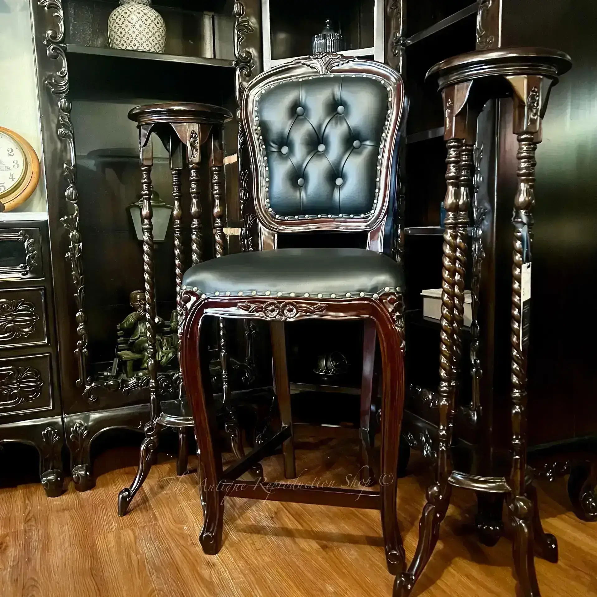 Part of our wonderful French provincial range is our Louis rose carved barstools. These beautiful french provincial barstools with full upholstered and buttoned design, work perfect to create that opulent luxurious french feel. Featuring beautifully carved detailing, turned cabriole legs, diamond folded tufted button backing, upholstered seat and solid mahogany construction.