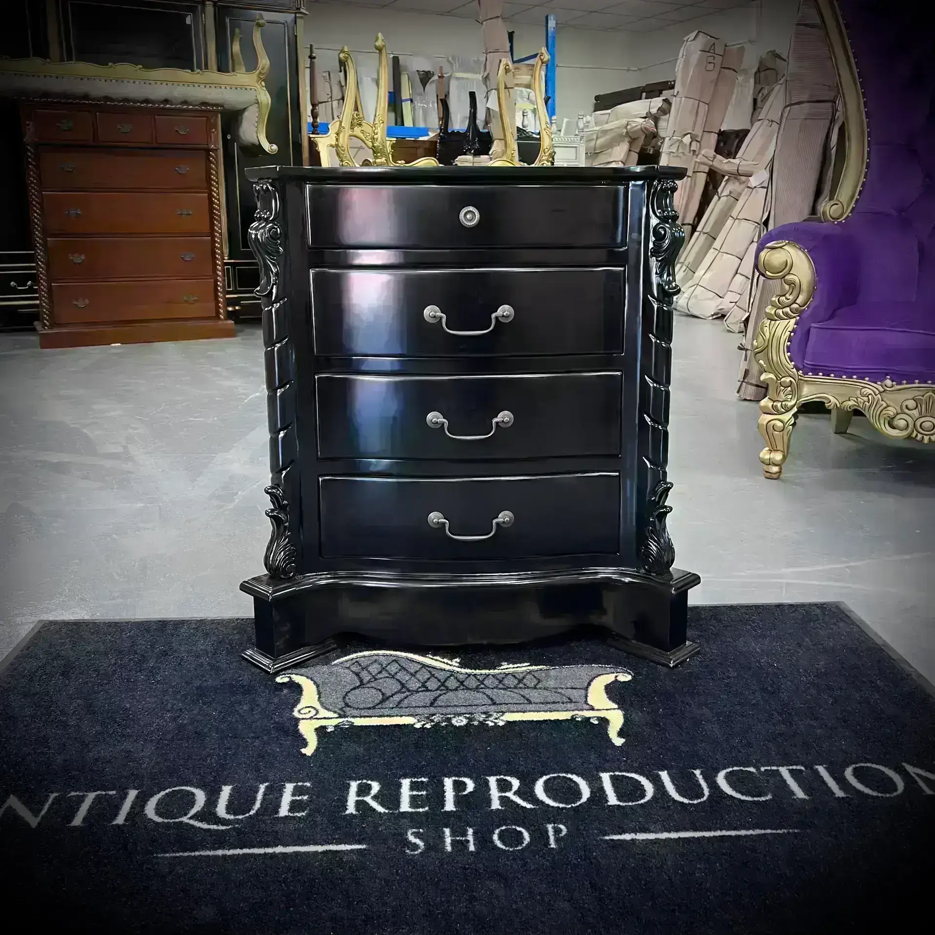 A gorgeous French provincial shaped solid mahogany French chest of drawers! Its shape offers an element of focus to your room, with a soft yet standout affect. A very French provincial piece that oozes style and opulence. These lovely drawers are hand crafted and beautiful quality!