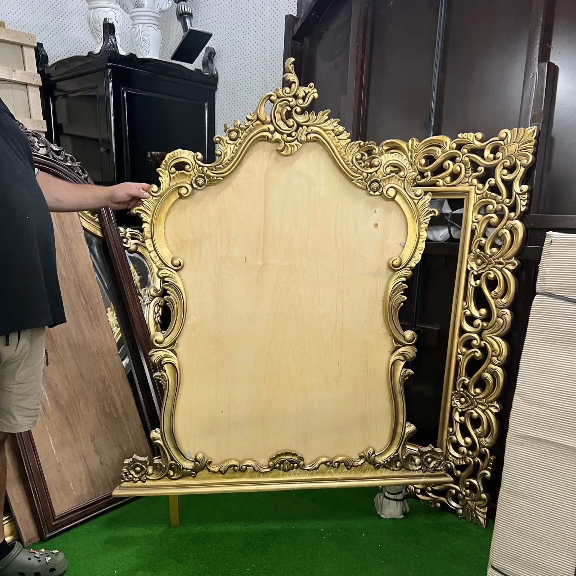 Part of our wonderful range of antique reproduction furniture is our french provincial heavy carved mirror frame. This beautiful original french design wall mirror works perfect to create that opulent luxe french look. Featuring beautifully carved heavy detailing, beautifully hand carved, solid mahogany construction and dressing table attachment.