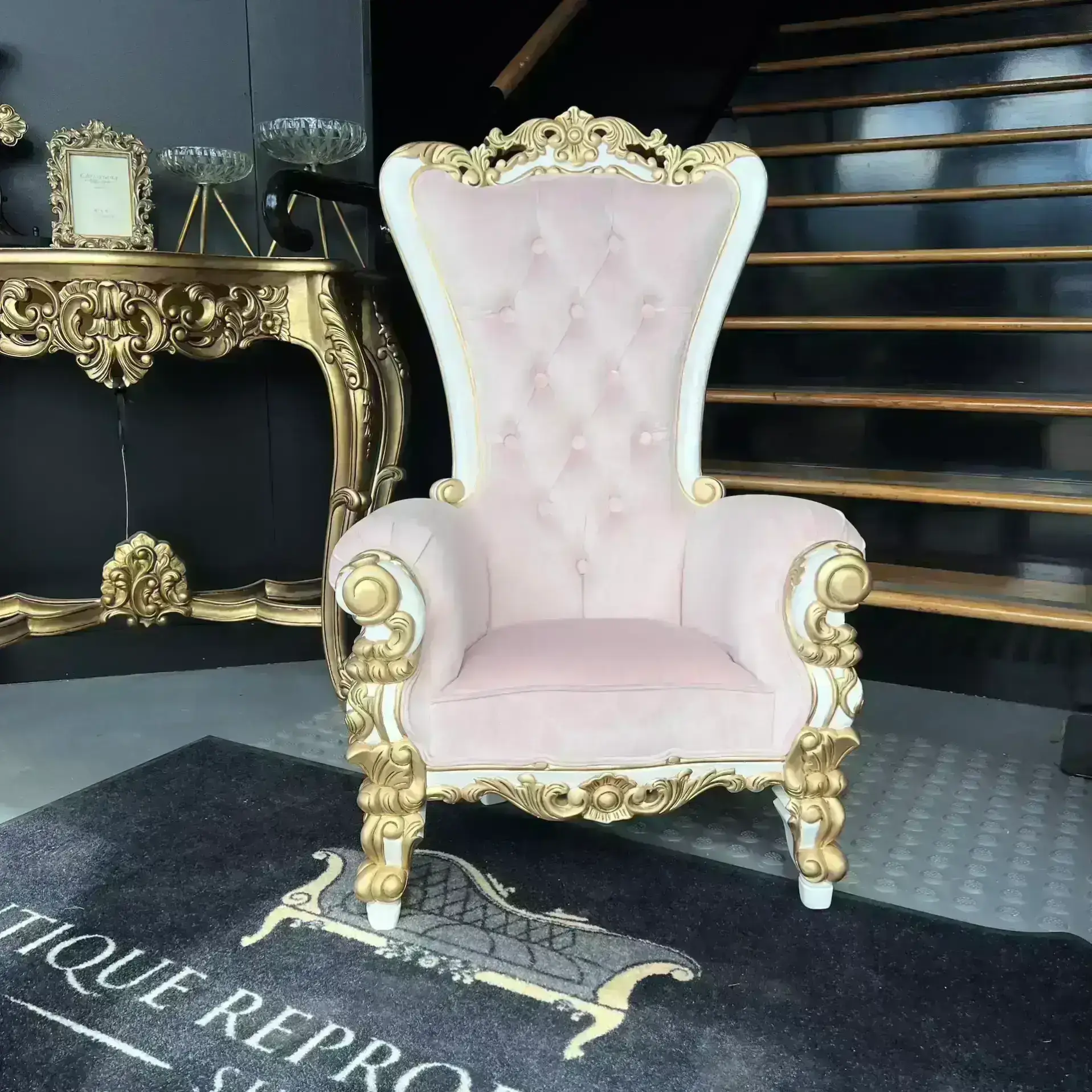 Mini Kids Event Throne Chair Baby Pink White & Gold