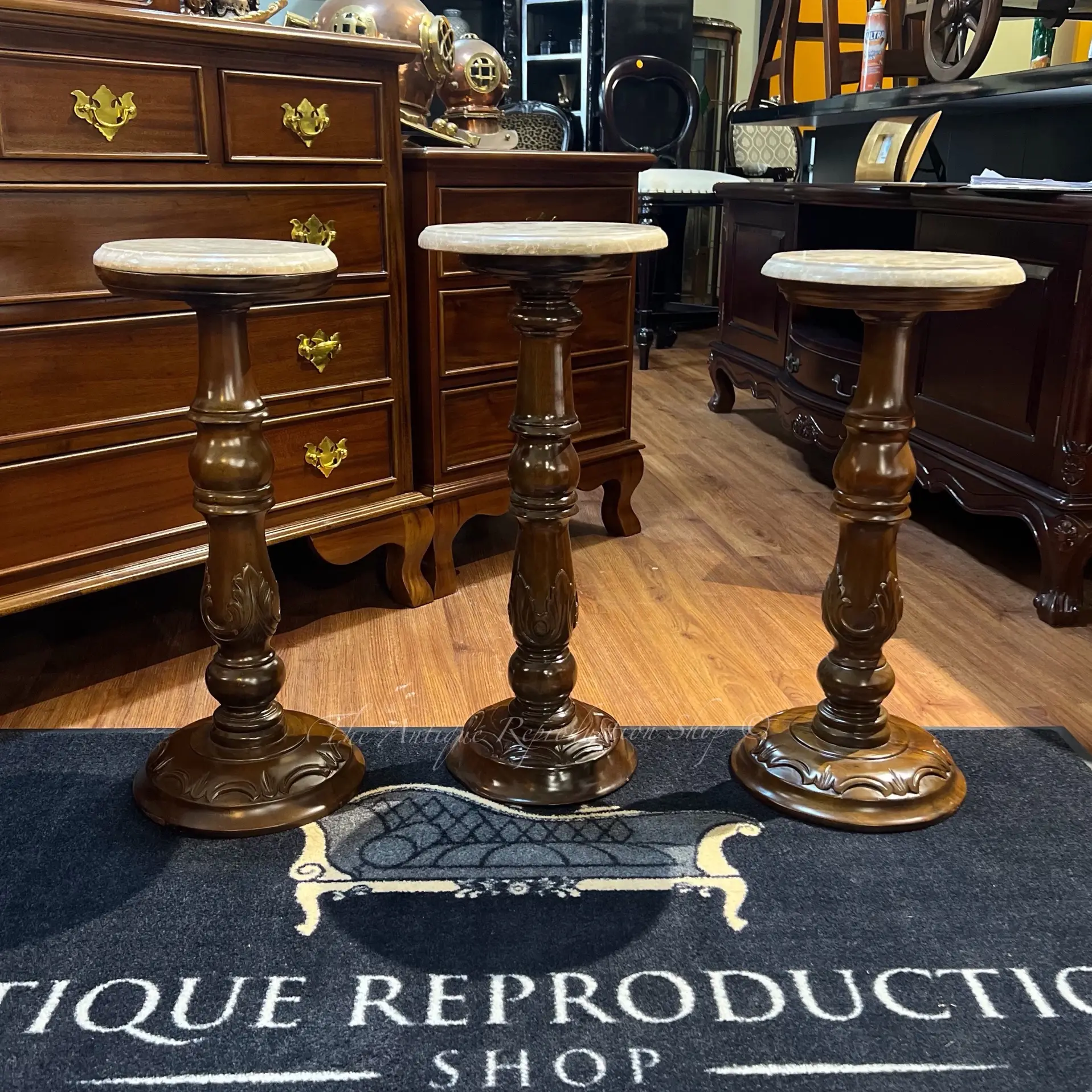 Victorian Art Deco Plant Stand With Marble Top SML - Medium Tea Brown