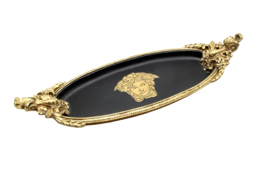 I love the Medusa Oval Black and Gold Tray! The black and gold design adds such a classy touch to my space and the craftsmanship is solid, and it feels durable.